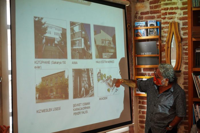 Yüksek Mimarlar Eda Kale, Halûk Aysu, Erdoğan Altındiş, Alexis Şanal, Damien Dessane, Ayvalık tarihi araştırmacısı ve yazar Beril Güngör, Sakarya Mahallesi’nde, yapılabilecek düzenlemeler hakkında hazırladıkları sunumu katılımcılara detaylarıyla birlikte anlattılar. Sunuma Ayvalık Belediye Başkanı Mesut Ergin, Belediye Meclis Üyesi Özge Toygar, belediye teknik birim müdürleri ve Sakarya Mahalle Muhtarı İbrahim Kurtay katıldı.