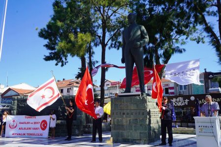 Saygı duruşu ve İstiklal Marşı’nın okunmasının ardından Türkiye Gazi ve Şehit Aileleri Vakfı Ayvalık Temsilciliği ve Türkiye Muharip Gaziler Derneği temsilciliğinin Atatürk anıtına çelenklerinin sunulduğu anma etkinliği; gaziler, sivil toplum kuruluşlarının temsilcileri ve vatandaşların anıtı çiçek yağmuruna tutmasıyla devam etti.