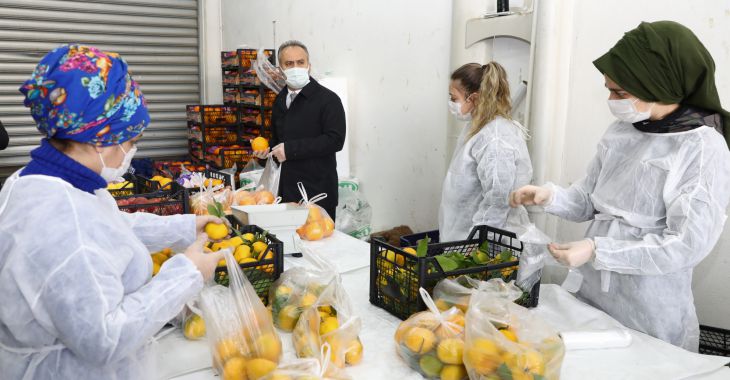 Bursa Büyükşehir Belediye Başkanı Alinur Aktaş, Hikmet Şahin Kent Hali’nde vitamin destek paketlerinin hazırlanması çalışmalarını yerinde inceledi. C vitamini bakımından zengin turşu, limon, portakal, mandalina ve narların poşetlere doldurulmasına bizzat kendisi de katılan Başkan Aktaş, pandeminin Türkiye’de ilk görüldüğü andan itibaren her zaman vatandaşların yanında olduklarını belirterek, şimdi de karantinadaki vatandaşlara vitamin desteği sağladıklarını vurguladı. Gelir durumuna bakılmaksızın başvuran herkese vitamin destek paketlerinin ulaştırıldığını dile getiren Başkan Aktaş, “Çünkü her vatandaşımız bu meyveleri alabilecek güce sahiptir. Ancak genelde vitamin almayı ihmal ediyoruz. Bu nedenle C vitamini paketleri ile vatandaşımızın yanındayız” dedi.