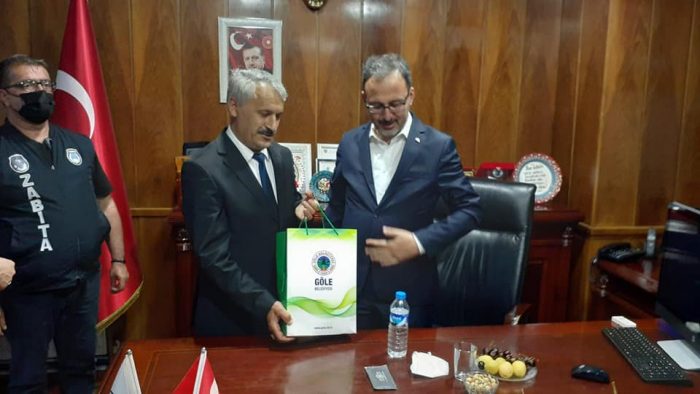 Temaslarını sürdüren Bakan Kasapoğlu daha sonra Vali Hüseyin Öner, Milletvekili Prof. Dr. Orhan Atalay ve beraberindeki heyet ile birlikte Göle ilçesine giderek Belediye Başkanlığını ziyaret etti. Başkan İlhan Gültekin’den ilçenin genel durumuyla ilgili bilgi alan Bakan Kasapoğlu, esnaf ziyaretinde bulundu. Bir çay ocağında Valimiz Hüseyin Öner ve beraberindekilerle birlikte çay içen Bakan Kasapoğlu, inşaat çalışmaları tamamlanan Kültür merkezinde ve spor tesislerinde incelemede bulundu.