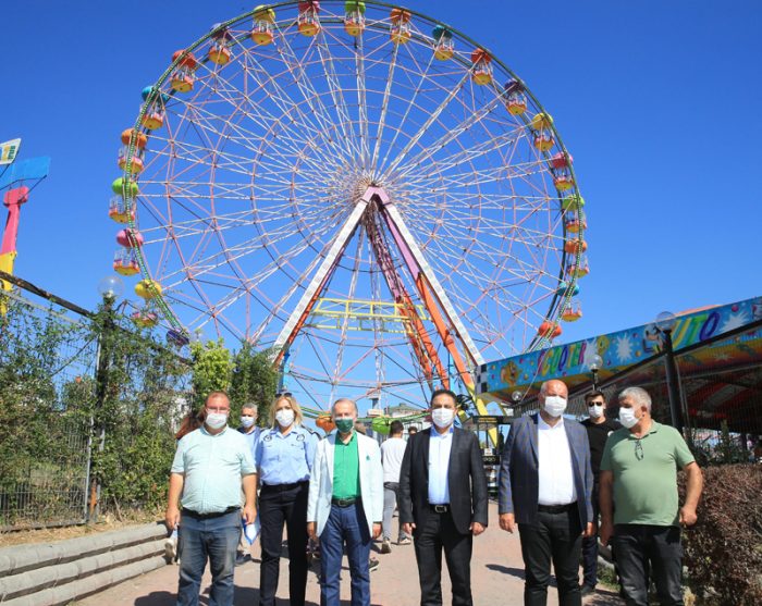 Bayrampaşa Belediye Başkanı Atila Aydıner, pandemi tedbirleri kapsamında ilçe Kaymakamı Dr. Soner Şenel ile birlikte, Bayrampaşa Şehir Parkı’nda bulunan lunapark, kafeler, oyun parkları ile yürüyüş yollarında incelemelerde bulundu. Maske, mesafe ve temizlik üçlüsünün virüs ile mücadelede en önemli tedbir olduğunu belirten Başkan Aydıner, parktaki vatandaşlar ve çocuklar ile de sohbet etti, onlara virüsten korunma yöntemlerini anlattı.