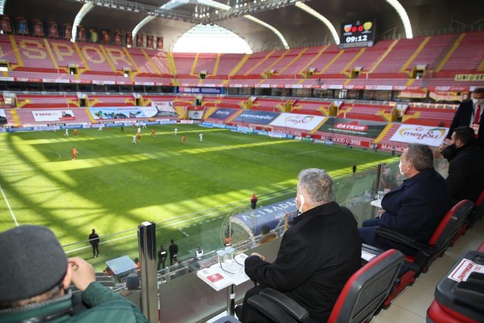 Kayseri Büyükşehir Belediye Başkanı Dr. Memduh Büyükkılıç, Süper Lig’in 25. Haftası’nda golsüz eşitlikle sonuçlanan HES Kablo Kayserispor-MKE Ankaragücü karşılaşmasında, Kayserispor’un golünün iptal edilmesine tepki göstererek, “Adeta çifte standart uygulamalar yapılıyor. Hakem kararları bizleri rahatsız ve huzursuz ediyor. Biz dayanışma içerisinde hep birlikte sahip çıkarsak, takımımız da daha iyi noktalara taşınır. Bizi var iken yok saymaya çalışanlar da mahcup olur, VAR olarak gelmeye başlar” dedi.Süper Lig’in 25. Haftası’nda Kadir Has Stadyumu’nda HES Kablo Kayserispor’un başkent temsilcisi MKE Ankaragücü ile 0-0 kaldığı maçı tribünden izleyen Büyükşehir Belediye Başkanı Dr. Memduh Büyükkılıç, sarı kırmızılı takımın attığı golün Video Yardımcı Hakem (VAR) tarafından haksız şekilde iptal edildiğini belirtti.