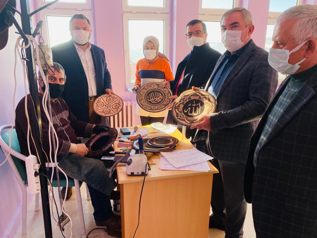 Ak Parti İlçe Başkanı ile birlikte Halk Eğitim Merkezimize ziyaret gerçekleştirdik. Bakır İşlemeciliği, Amigurumi bebek, Lavanta Kesesi ve Taş boyama gibi verilen kurslarla Çekerekli hanım kardeşlerimiz, maharetli beylerimiz el becerilerini arttırma ve aile bütçelerine katkı sunma imkânı buluyor.