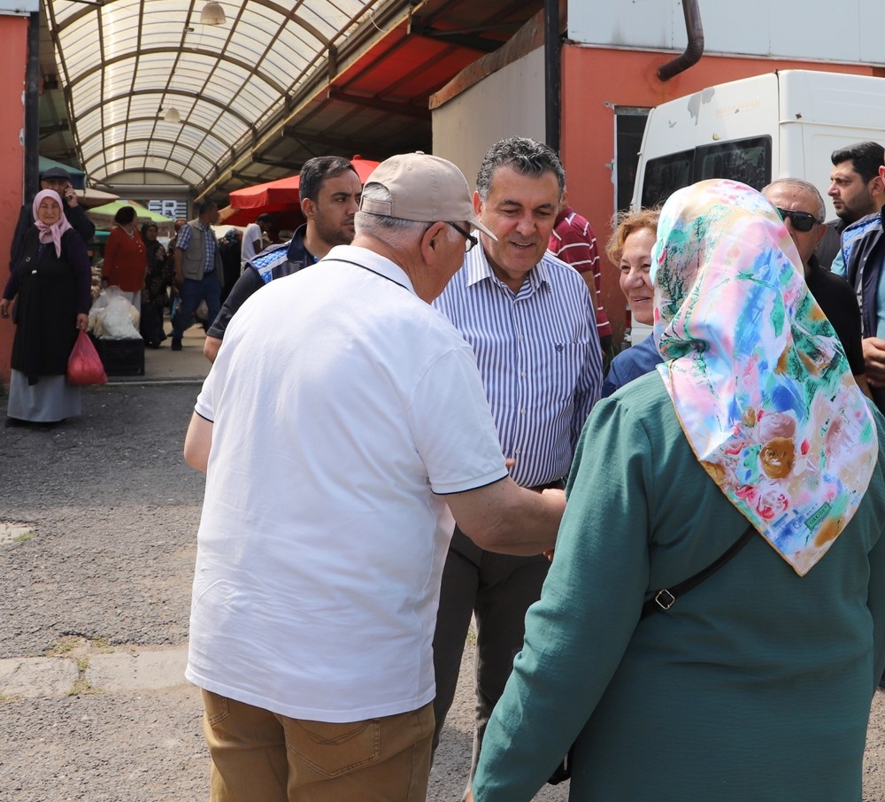 Güne sahada devam eden belediye ekiplerinin çalışmalarını denetleyerek başlayan Belediye Başkanı Faruk Demir, her Perşembe günü kurulan semt pazarını da ziyaret ederek esnaflara hayırlı işler dileğinde bulundu. Esnaf ve vatandaşlarla bir süre sohbet ederek, onların sorun ve taleplerini dinleyen Başkanı Demir’i pazar ziyaretinde eşi Zuhal Demir de vatandaşlarla yakın sohbetler paylaştı.