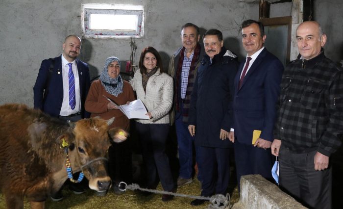 Atakum Belediyesi ile Samsun Karadeniz Rotary Kulübü iş birliği ile hayata geçen “Jersey Irkı İnek Dağıtım Projesi” kapsamında bir süre önce Jersey ırkı ineklerin dağıtımlarının gerçekleştirildiği üreticileri ziyaret eden Atakum Belediye Başkanı Av. Cemil Deveci, “Amacımız hayvancılığı ve tarımı desteklemek” dedi.