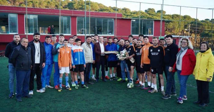Spora ve sporcuya verdiği destekleri hiçbir zaman esirgemeyen, Ayvalık Belediye Başkanı Mesut Ergin Körfez gurubu U-18’de ve 1. Amatör kümede şampiyon olan Yenimahallespor Kulübü’nün antrenmanını ziyaret etti.