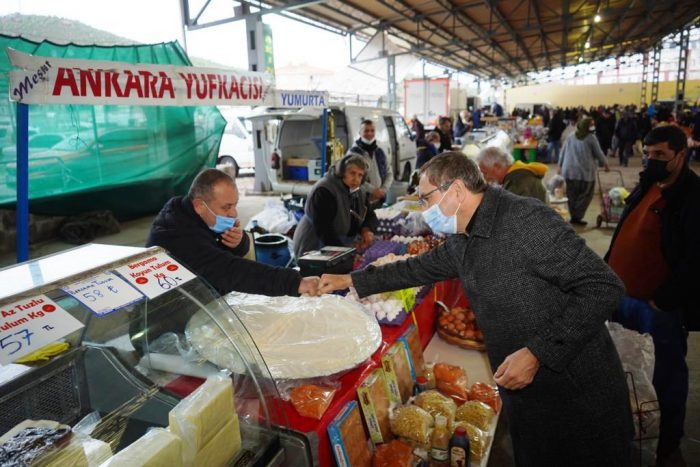 Başkan Ergin, pazar alışverişinin uzun yıllardır bir aile geleneği olduğunu belirterek pandemi konusunda da hem pazarcı esnafını hem vatandaşları uyararak, “Sosyal mesafeye uyalım, uymayanları uyaralım, maske kullanımına özen gösterelim. Özellikle ellerimizi sık sık yıkamayı ve dezenfektan kullanmayı unutmayalım. Öncelikle sağlığımızı kendimiz koruyalım” dedi.