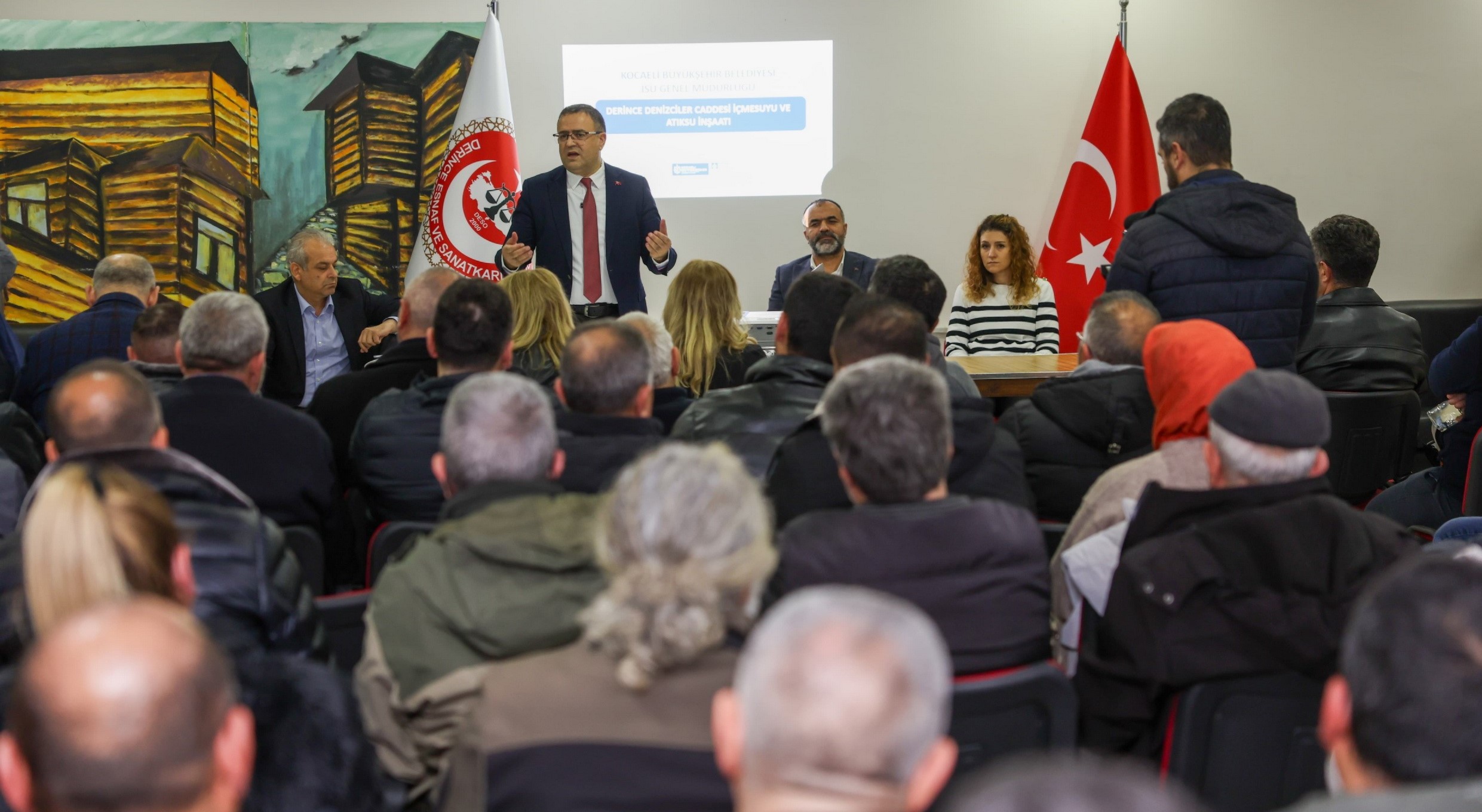 Denizciler Caddesi’nde gerçekleşecek olan altyapı ve üstyapı düzenlemeleri öncesi cadde esnafları ve ilgili kurum yetkililerinin katılımıyla bir toplantı düzenleyen Başkan Gökçe “Derince ‘mizi birlikte yenileyerek, güzelleştireceğiz” dedi