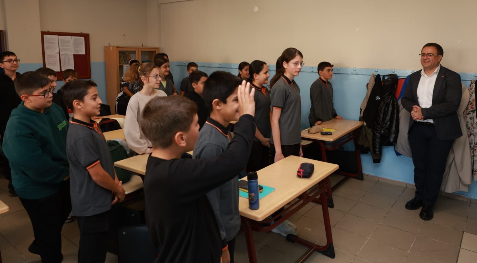 İlçedeki eğitim kurumlarını ziyaret ederek öğrencilerle bir araya gelen Derince Belediye Başkanı Av. Sertif Gökçe bu kez Huriye Pak İlk ve Ortaokulu’na konuk oldu