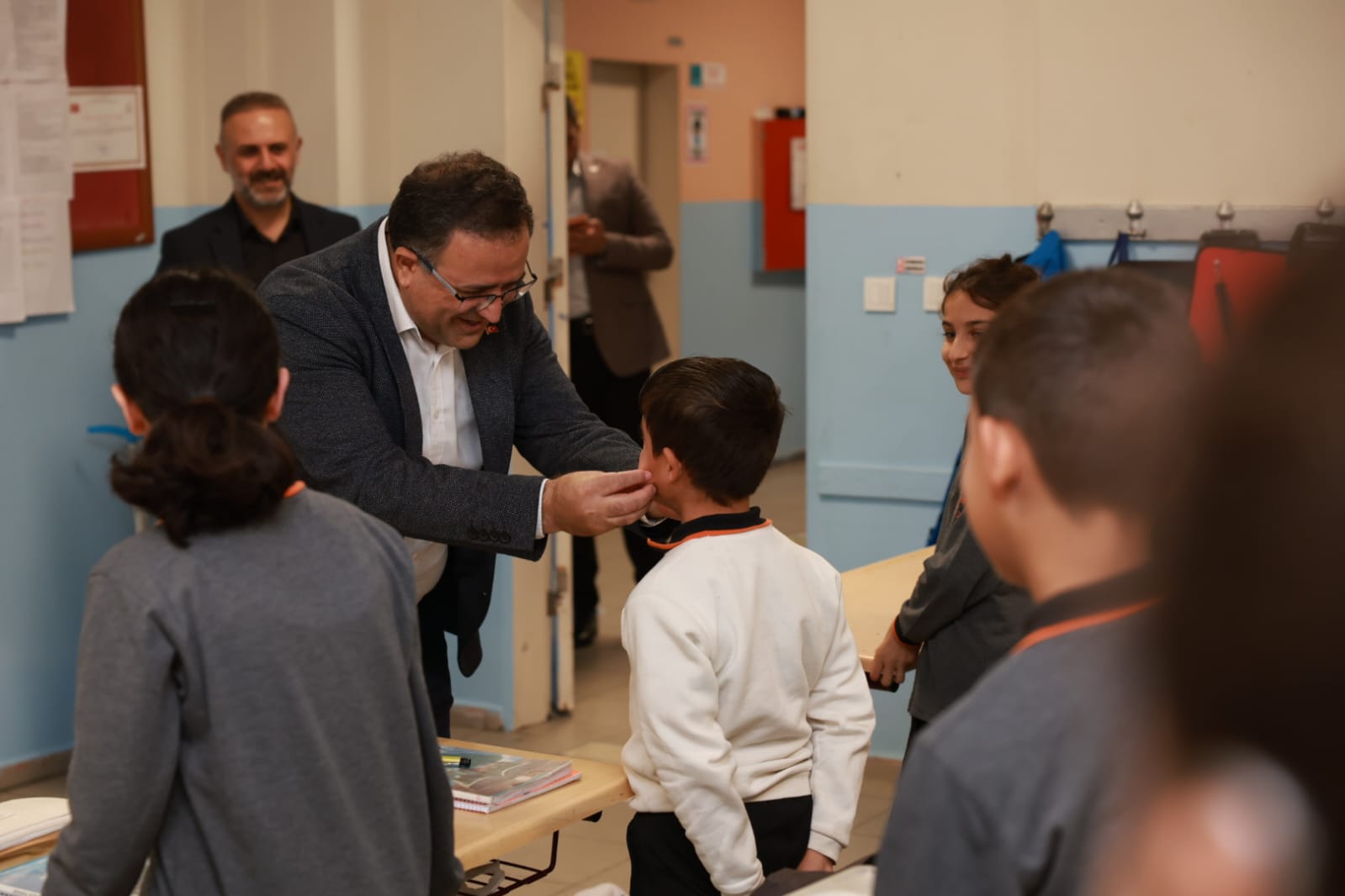 ÖĞRENCİLER 1-2-3-4: İlçedeki eğitim kurumlarını ziyaret ederek öğrencilerle bir araya gelen Başkan Gökçe bu kez Huriye Pak İlk ve Ortaokulu’na konuk oldu.