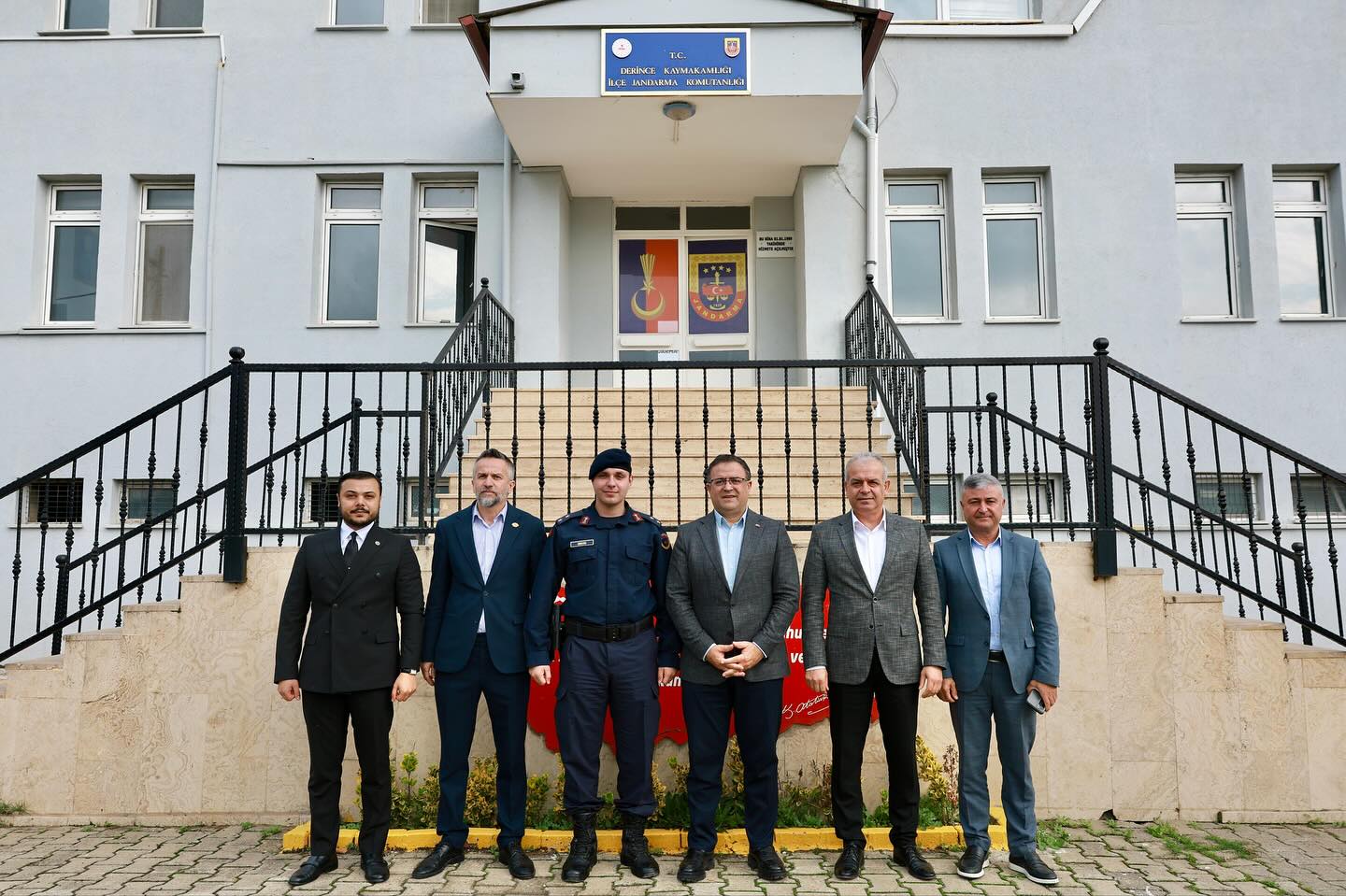 Kurumlar arası iş birliğine önem veren Derince Belediye Başkanı Av. Sertif Gökçe, İlçe Jandarma Komutanı Üsteğmen Anıl Bahadır Irkın, İlçe Emniyet Müdürü Ömür Kuyu ve İlçe Nüfus Müdürü Menderes Van’a hayırlı olsun ziyaretlerinde bulundu