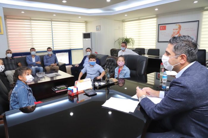 Menderes Belediye Başkanı Mustafa Kayalar, Barbaros Mahallesi’nde yer alan Mia Garden Sitesi’nin sakinleri olan çocukları makamında ağırladı. Çocukların kendisine yazdığı mektubu okuyan Başkan Kayalar, mektupta yazan talepleri yerine getirme sözü verdi.