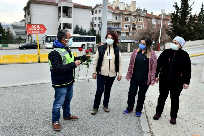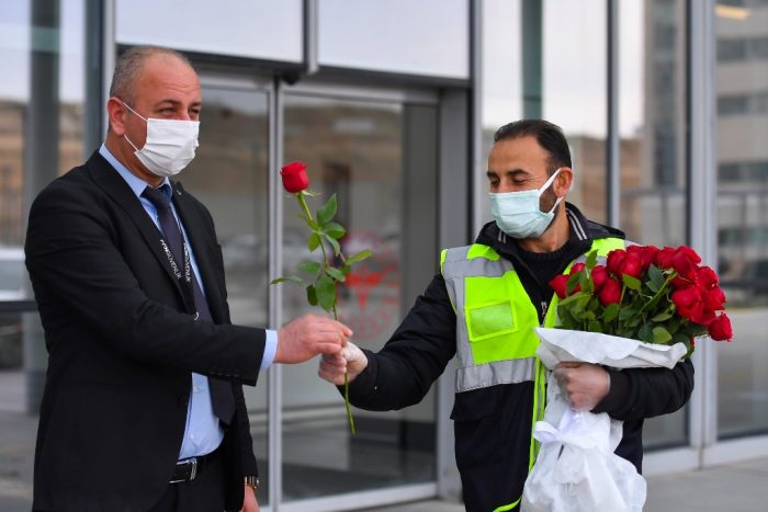 ANFA ekipleri tarafından dağıtılan kırmızı güllerle güne başlayan sağlık çalışanları ile hasta ve hasta yakınları yaptığı bu jest nedeniyle Büyükşehir Belediye Başkanı Mansur Yavaş’a şu sözlerle teşekkür ettiler: