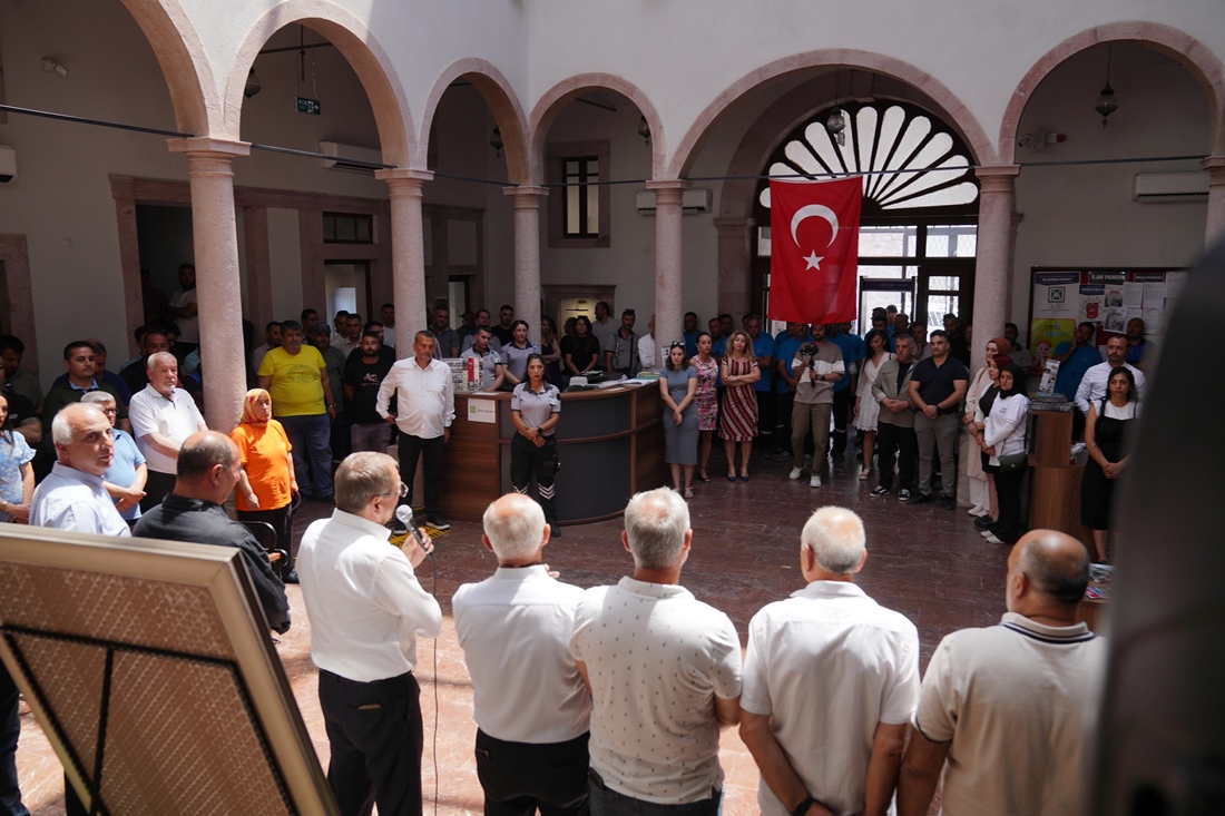 Ayvalık Belediye Başkanı Mesut Ergin, Kurban Bayramı’nda çalışanlarıyla bir araya geldi.. Tüm birim çalışanlarının buluştuğu kutlamada ikramiye müjdesi de veren Başkan Ergin, ekonomik koşullarda bayram öncesi çalışanlarına ellerinden gelen desteği verdiklerini söyledi. Hizmet anlamında da sahada birçok işin gerçekleştirildiğini, bunların da çalışanların emekleriyle yaşama geçirildiğinin altını çizen Başkan Ergin şöyle devam etti: