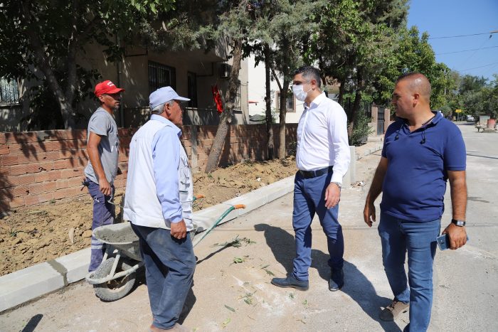 Menderes Belediye Başkanı Mustafa Kayalar, gerçekleşen kaldırım çalışmalarını yerinde inceledi.