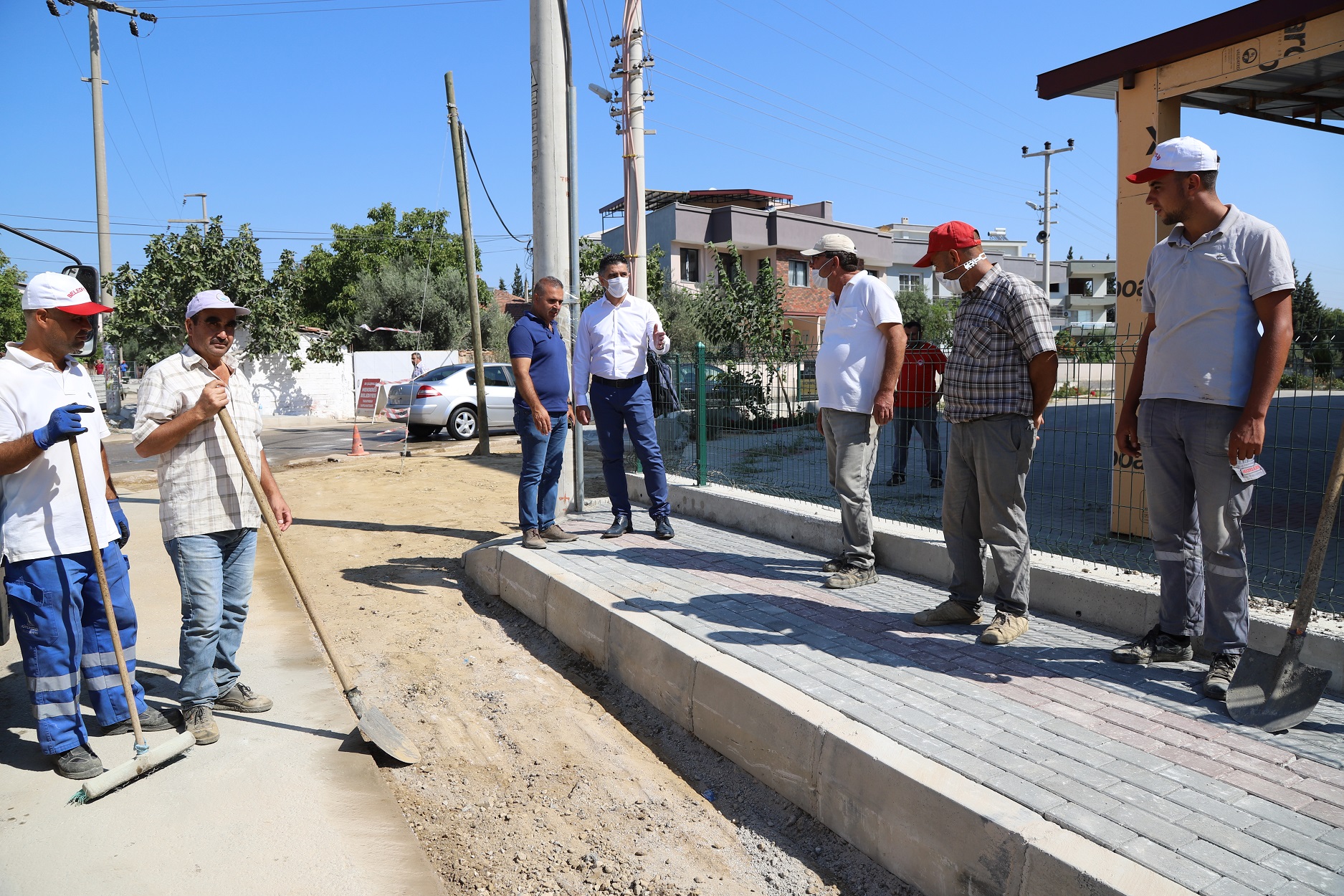 Menderes Belediye Başkanı Mustafa Kayalar, gerçekleşen kaldırım çalışmalarını yerinde inceledi.