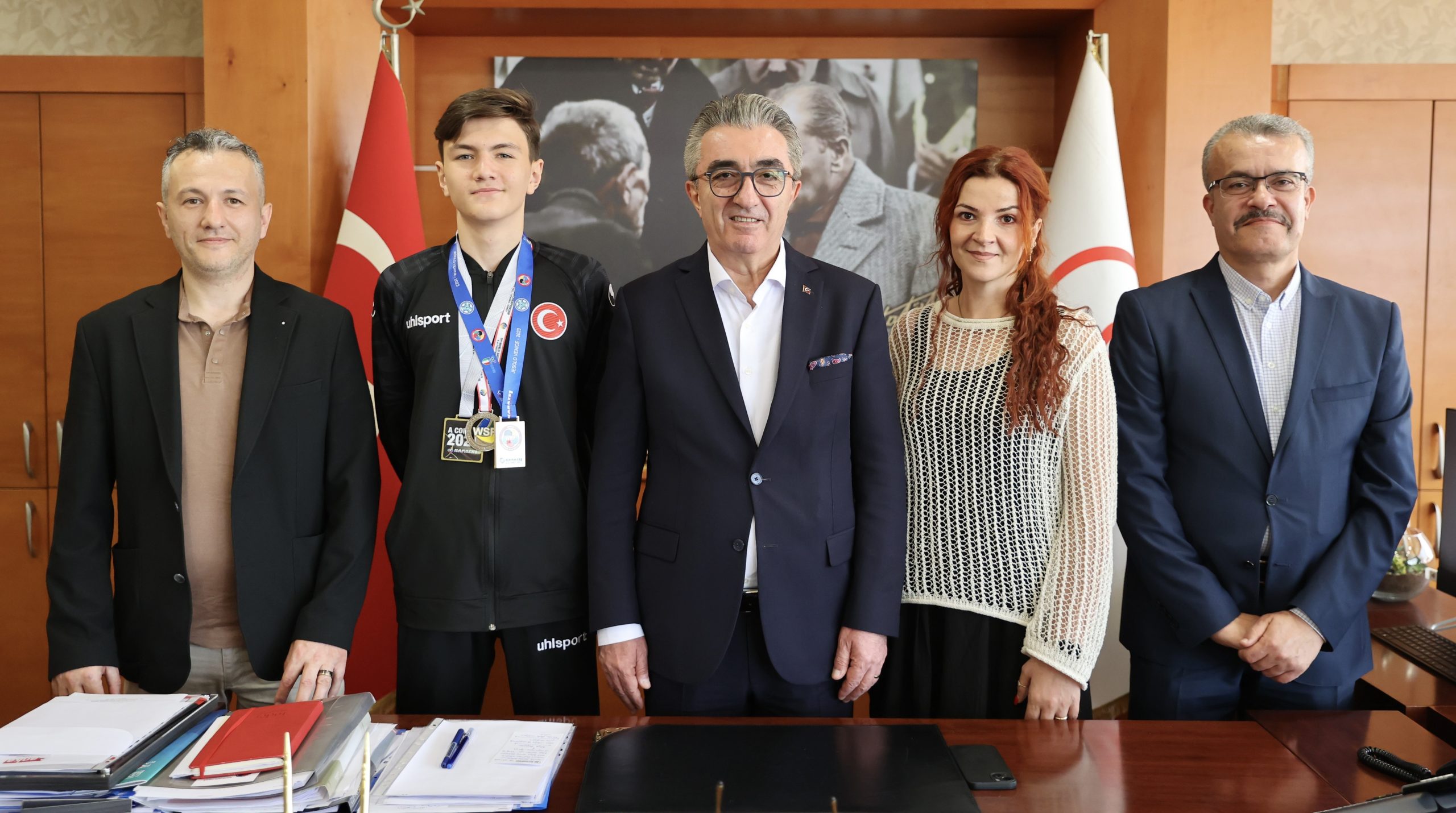 Dünya şampiyonu Hamza’yı, öğretmenlerini ve antrenörünü kabul eden Bayrampaşa Belediye Başkanı Mutlu, “İspanya’da büyük başarı göstererek bizleri gururlandıran, orada bayrağımızı dalgalandıran Hamza kardeşimizi tebrik ediyorum. Eğitimcilerimizin ve sporcularımızın en büyük destekçisi biz olacağız” dedi.
