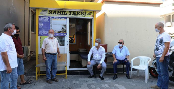Oktay ve Tarım’ın ilk ziyaret noktası Kordon Caddesi’ndeki taksiciler oldu. Taksici esnafıyla uzun süre sohbet eden Başkan Oktay taksicilerin sorunlarını dinledi. Salgın nedeniyle işlerinin geçen yıllara göre büyük oranda düştüğünü ifade eden taksi şoförleri aldıkları önlemleri anlattı.