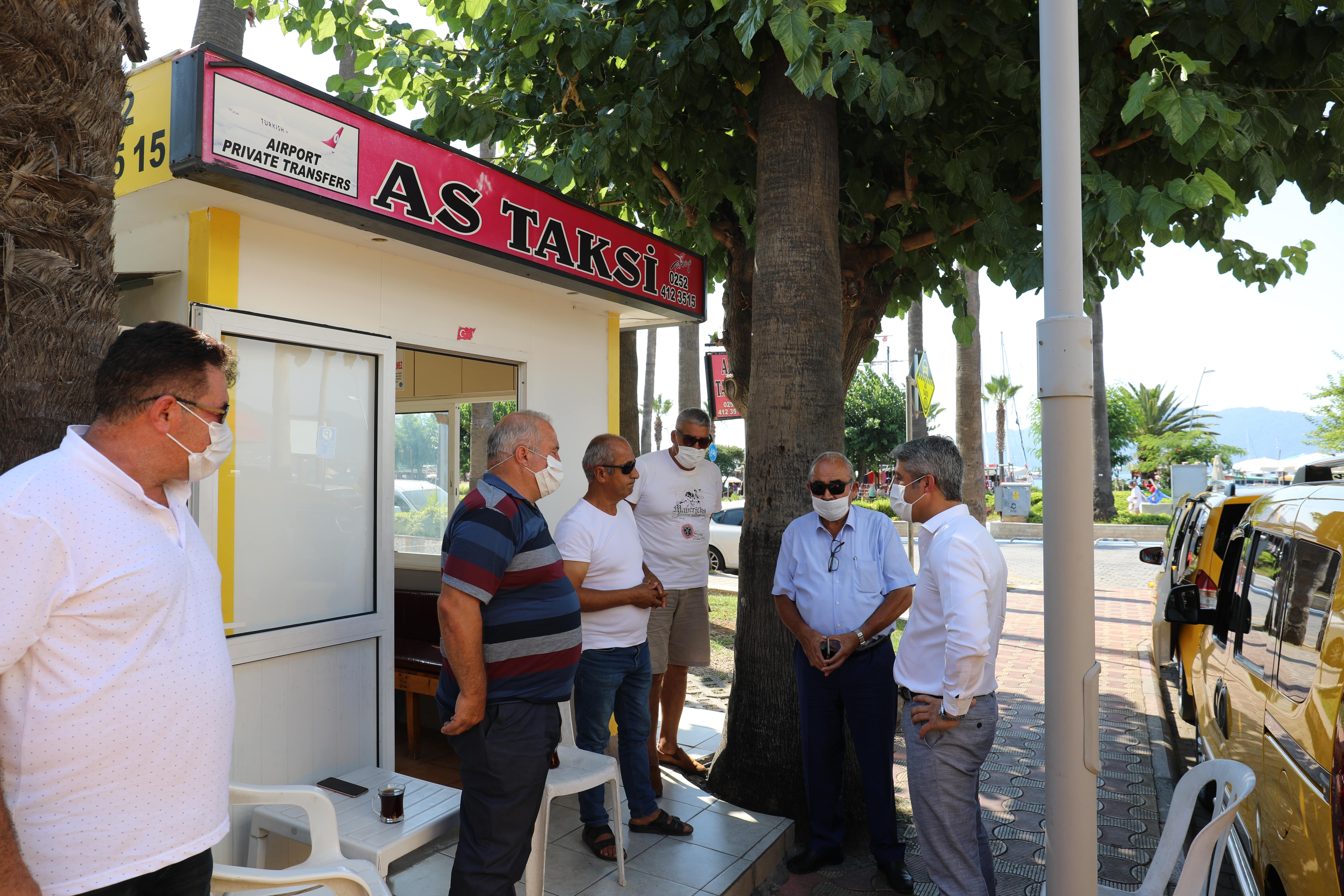 Marmaris Belediye Başkanı Mehmet Oktay ve Marmaris Şoförler Odası Başkanı İbrahim Tarım, koronavirüs salgını nedeniyle zor günler geçiren taksi duraklarını ziyaret ederek taksici esnafının taleplerini dinledi. Oktay, maske, sosyal mesafe ve hijyen kurallarını bir kez daha hatırlattı.