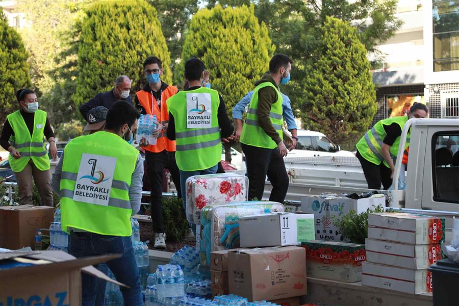 Depremin hemen ardından yaraları sarmak için yardıma koşan herkese teşekkürlerini ileten Bayraklı Belediye Başkanı Serdar Sandal, “Yalnız olmadığımızı ve ortak acılarımızda kenetlenerek, ne kadar büyük bir aile olduğumuzu bir kez daha bize hissettiren herkese minnettarız. Bize güç veren, yanımızda olan, acılarımızı bizimle birlikte saran tüm yurttaşlarımız dünyaya önemli bir dayanışma örneği gösteriyor. İyi ki varsınız” dedi. AHA.