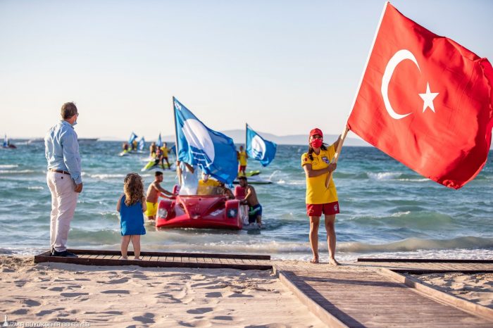 Soyer, TÜRÇEV tarafından açıklanan 2020 yılı ödülleri kapsamında İzmir’de 10 ilçede 52 Mavi Bayraklı plaj olduğunu söyleyerek sözlerine şöyle devam etti: “Ülkemiz, ödüllü plaj sayısıyla İspanya ve Yunanistan’ın ardından üçüncü sırada yer alıyor. İzmir’de amacımız, mavi bayraklı plaj sayısını artırarak ülkemizi, dünya ölçeğinde daha yukarıya taşımak. İzmir Büyükşehir Belediyesi, 10 ilçemizdeki Mavi Bayraklı halk plajlarının koordinasyonunu sağlamak ve İzmir’deki halk plajı sayısını artırmak için Mavi Bayrak Koordinasyon Birimi kurdu. Türkiye’de ilk kez bir belediye bünyesinde kurulan bu birimin Kasım 2019’dan bu yana yürüttüğü çalışmalar çerçevesinde, İzmir’deki Mavi Bayraklı halk plajı sayısını artırmayı başardık. Birimimizin koordinasyon desteğiyle İzmir’de bu yıl beş halk plajı daha Mavi Bayrak kazandı. Böylelikle bu yaz ilk defa Çeşme Ilıca Halk Plajı, Güzelbahçe 2’inci Liman Halk Plajı, TCDD Urla Eğitim ve Dinlenme Tesisleri, Urla Mavi Plaj ve Urla Çamlıçay Halk Plajı, mavi bayraklı olarak hizmet vermeye başlayacak.”