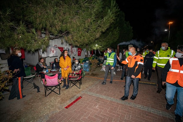 İzmir Büyükşehir Belediye Başkanı Tunç Soyer, Bornova Aşık Veysel Rekreasyon alanında kurulan çadırlardaki yurttaşları ziyaret etti.