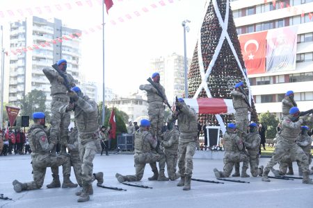Çelenk töreninin ardından sivil ve askeri erkan yürüyerek Uğur Mumcu Meydanı’na geçti. Burada saygı duruşunda bulunuldu, İstiklal Marşı okundu. Vali Süleyman Elban ve Adana Büyükşehir Belediye Başkanı Zeydan Karalar vatandaşların 5 Ocak Kurtuluş Bayramı’nı kutladı.