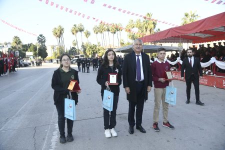 Başkan Zeydan Karalar sözlerini; “Bizi bugüne getiren, bu yüce vatanı bize bahşeden, öncelikle Mustafa Kemal Atatürk ve silah arkadaşlarına, yiğit kahraman atalarımıza, bütün şehit ve gazilerimize minnet borcumuz var. Onları rahmet, minnet ve saygıyla anıyoruz” diyerek noktaladı.