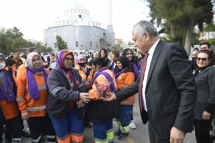 Ayrıca Adana Büyükşehir Belediyesi’nin kadın çalışanlarına karanfil takdim edildi.