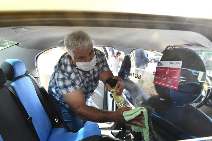Başkent’teki tüm taksicilere sms yoluyla bilgilendirme yapılırken, bu hizmetten yararlanmak isteyen taksiciler, “https://forms.ankara.bel.tr/taksi-covid” adresi üzerinden form doldurarak yararlanabilecek. Sürücü ile müşteri arasında doğrudan teması önleyecek şeffaf panel uygulamasına geçen taksilere “Bu araç koronavirüse karşı korunaklıdır’’ yazılı yapıştırmalar (sticker) da yerleştirilecek.