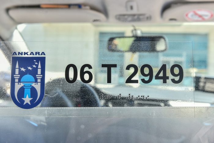 https://forms.ankara.bel.tr/taksi-covid linki üzerinden başvuru yapılması gerekiyor. Şeffaf panel üzerinde görme engelli vatandaşlar için Braille alfabesi ile yazılı araç plakası da yer alıyor.