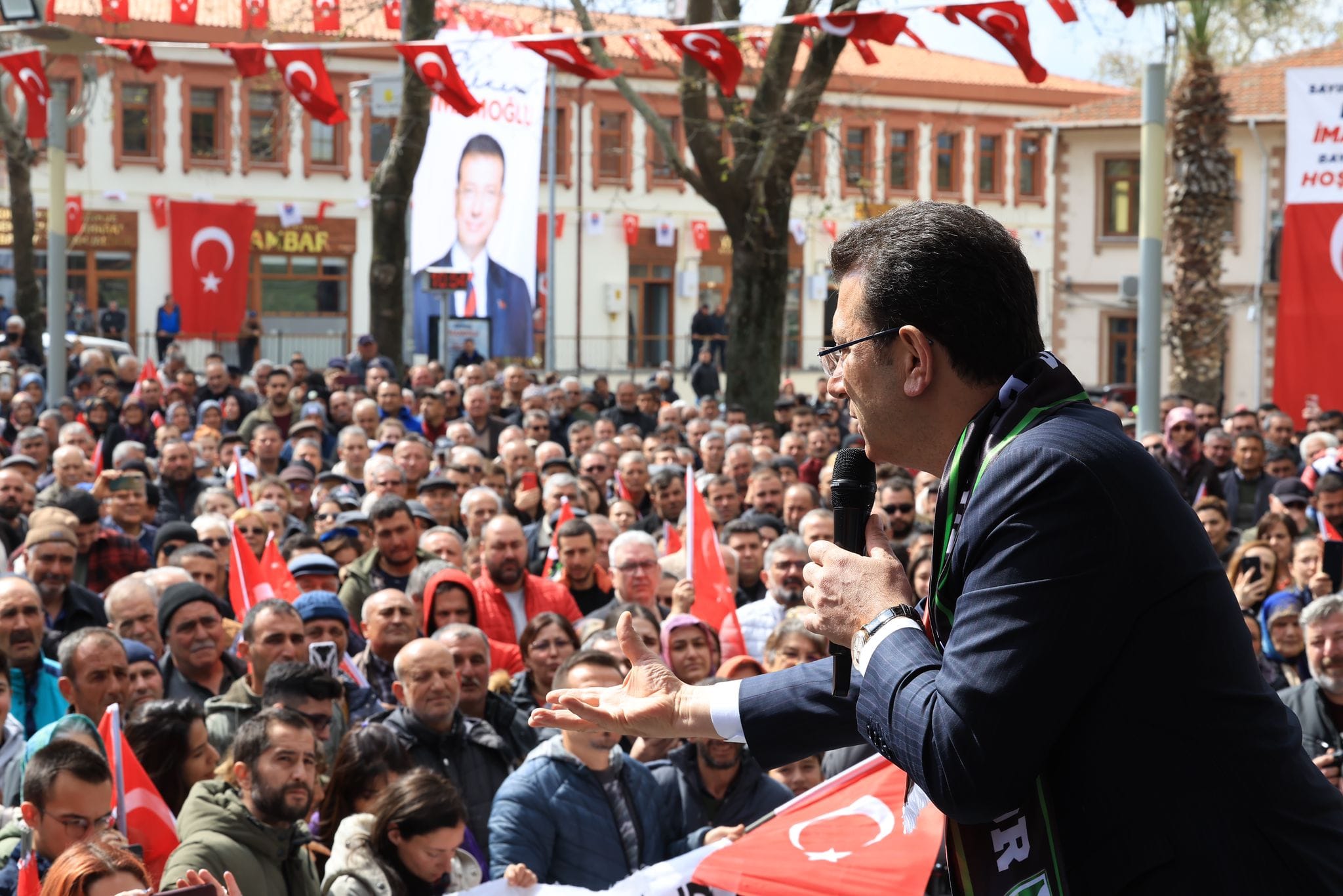 İBB Başkanı ve Millet İttifakı’nın Cumhurbaşkanı yardımcısı adayı Ekrem İmamoğlu, Bayramiç Belediyesi’nin düzenlediği Toplu Açılış ve Temel Atma Töreni’ne katıldı. Köylerin terkedildiğini, hizmetten uzaklaştırıldığını söyleyen İmamoğlu, “Köyde, kırsalda çalışan bütün insanların sosyal güvencelerini devlet olarak biz karşılayacağız. Sigortası olacak, emekli olacak” dedi. İnsanların ekonomik kriz nedeniyle bayramlık bile alamadıklarını kaydeden İmamoğlu, “Bir anda nasıl fakirleştik, bir anda paramız pul oldu. Türk Liramız pul oldu. Bunun sebebi bugünün hükümeti. Bir de çıkmışlar diyorlar ki yok beş yılda biz şunu yapacağız… Allah’tan korkun 21 yıl olmuş. Bizi bugüne getiren bu akla bir gün bile tahammül edemeyiz” ifadelerini kullandı.