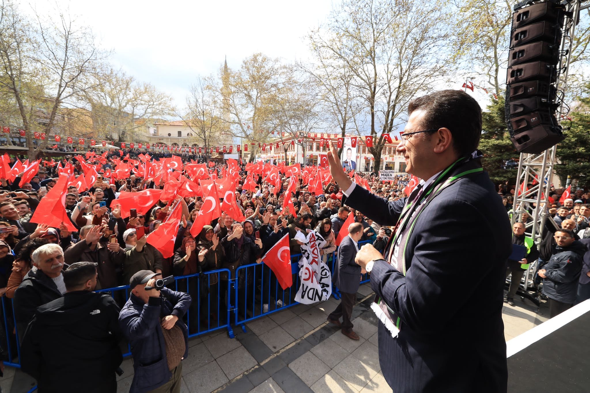 “Muhalefet partisinden belediye başkanı olduğunuzda nasıl ayrımcılık yaşarsınız, nasıl problem çıkarılır, işiniz engellenir; bunun çok komik, trajik hallerini ve konularını yaşadık. Eminim en az benim kadar Bayramiç Belediye Başkanımız da yaşadıklarını anlatabilir. Bunların hepsini sona erdireceğiz. Hükümet, belediye iş birliği nasıl yapılır, nasıl ahlaklı davranılır. Allah aşkına hiçbir akıl alıyor mu? Sayın Cumhurbaşkanı başka partiden hükümet başka partiden olabilir. Bu devletin her kurumu bizim kurumumuz. Bugün Bayramiç Belediye Başkanı aslında devletin bir kurumunu yönetiyor. Ben de İstanbul gibi dünyanın en büyük kentlerinden birisi, ülkenin göz bebeğini yönetiyorum. Ama onlar şöyle bakıyorlar bugünün iktidar; eğer benim partimden değilsen sen yoksun. Hatta bunun ötesinde ne yazık ki düşmanca tavırları bile görebiliyoruz. Kalkıp ‘topal ördek’ denmesi. ‘Sen 13 bin oyla seçimi kazandın mı zannediyorsun’ denmesi. Yani halbuki mesele nedir? Bir oyla bile kazanabilirsin. Ama işte 13 bin oyu beğenmeyen 806 bin oyluk tokadı yer. Demokrasi tokadı iyi bir tokattır. İnsanı kendine getirir. Ama bu arkadaşlar kendine de gelmiyor. Diyor ki illa ikinciyi de yiyelim. Onun zamanı yaklaştı.”