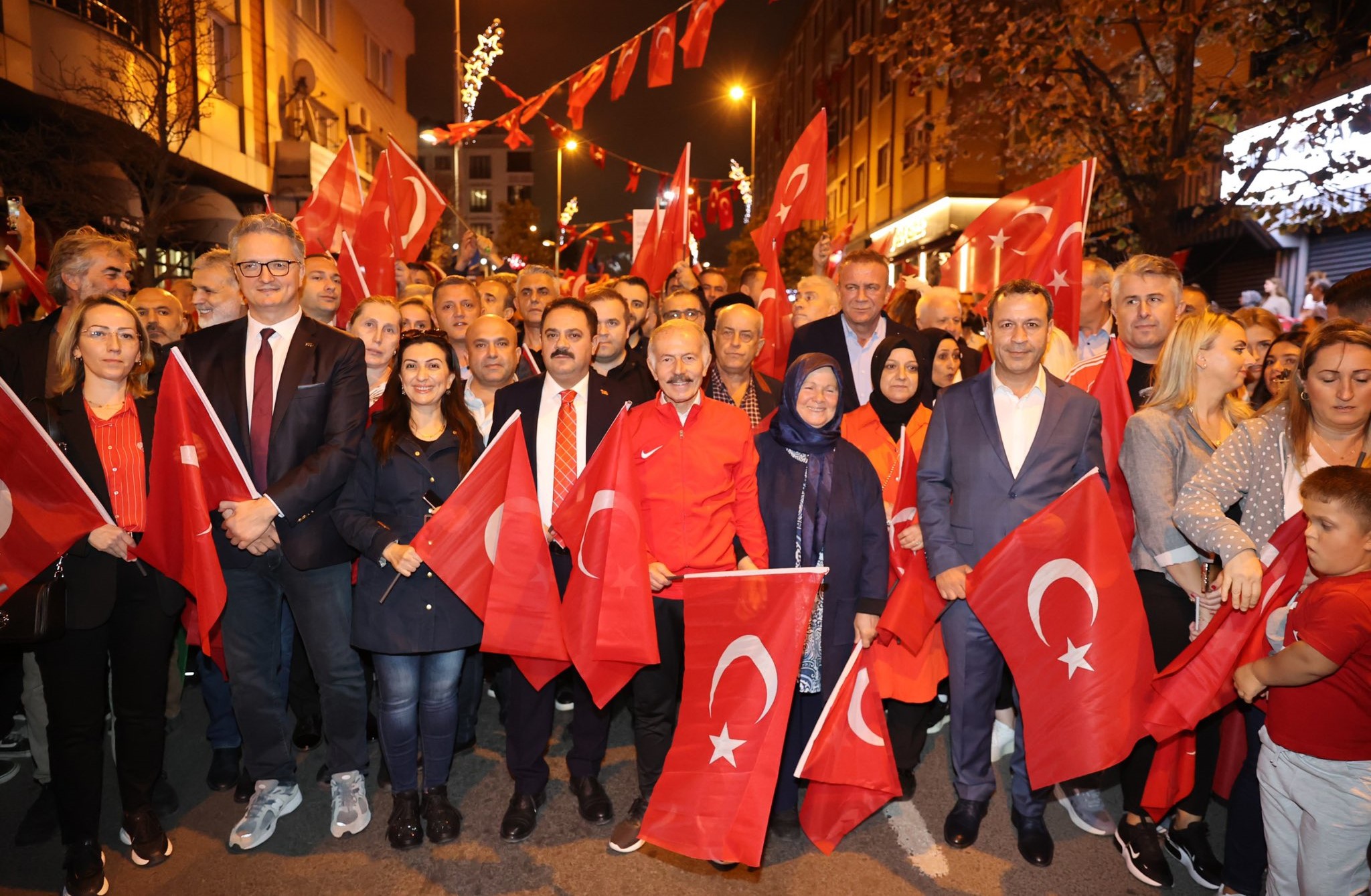 Cumhuriyetin ilanına atfen saat 19.23’te Şehit Kamil Balkan Caddesi’nde başlayan yürüyüş Adapark’ta sona ererken, kutlamalar burada gecenin ilerleyen saatlerine kadar devam etti.
