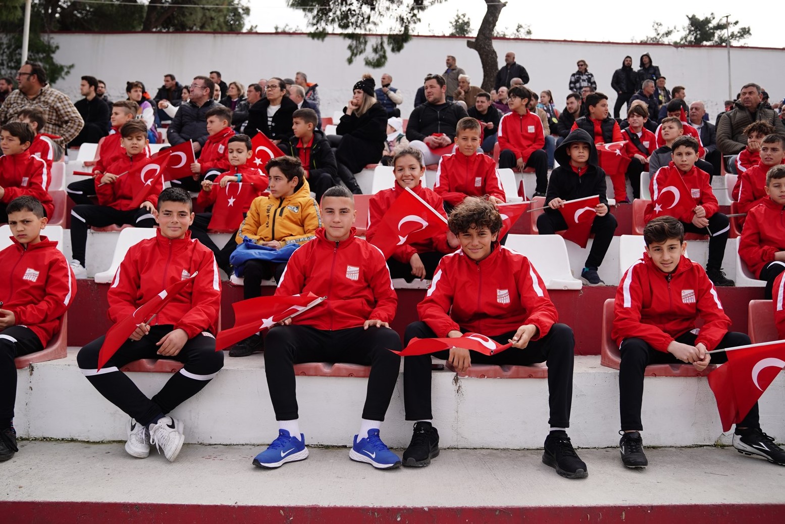 Ayvalık Hüsnü Uğural Stadyumu’nda gerçekleşen karşılaşmada iki ezeli rakip ve ezeli dost takımın taraftarları aynı tribünde “Türkiye tek yürek” diye haykırdı.