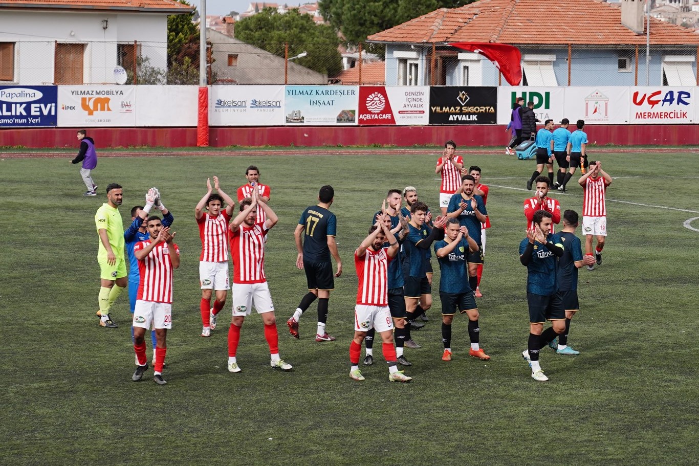 Ayvalık Hüsnü Uğural Stadyumu’nda gerçekleşen karşılaşmada iki ezeli rakip ve ezeli dost takımın taraftarları aynı tribünde “Türkiye tek yürek” diye haykırdı.