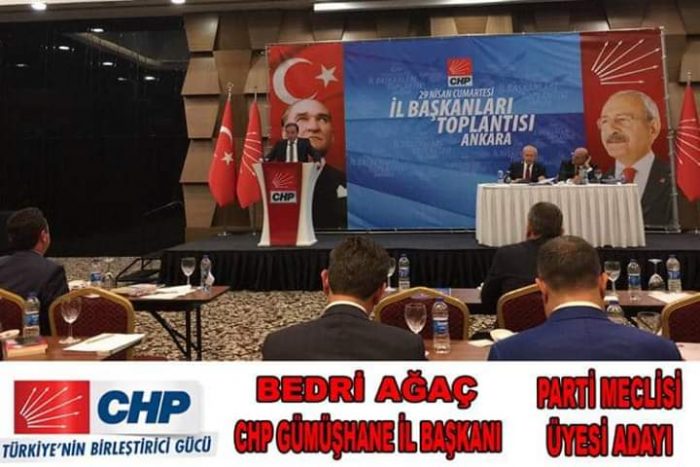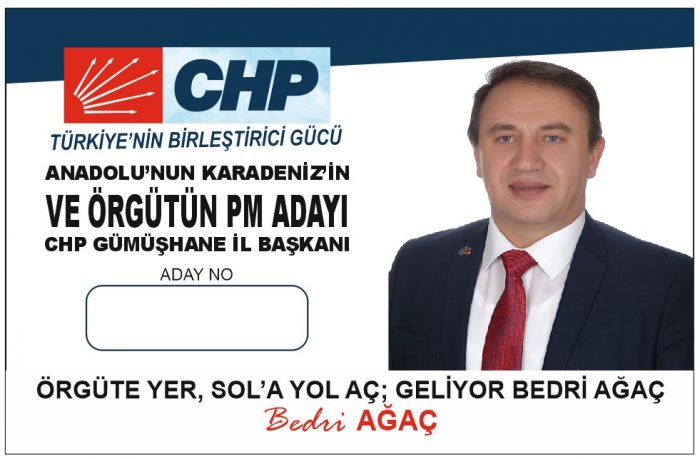 Cumhuriyet Halk partisi 37. Olağan kurultayında parti meclisi üyeliği adaylığını açıklayan CHP Gümüşhane il başkanı Bedri Ağaç CHP’de yeni yüzlerin enerjisine ihtiyaç olduğunu ifade etti.