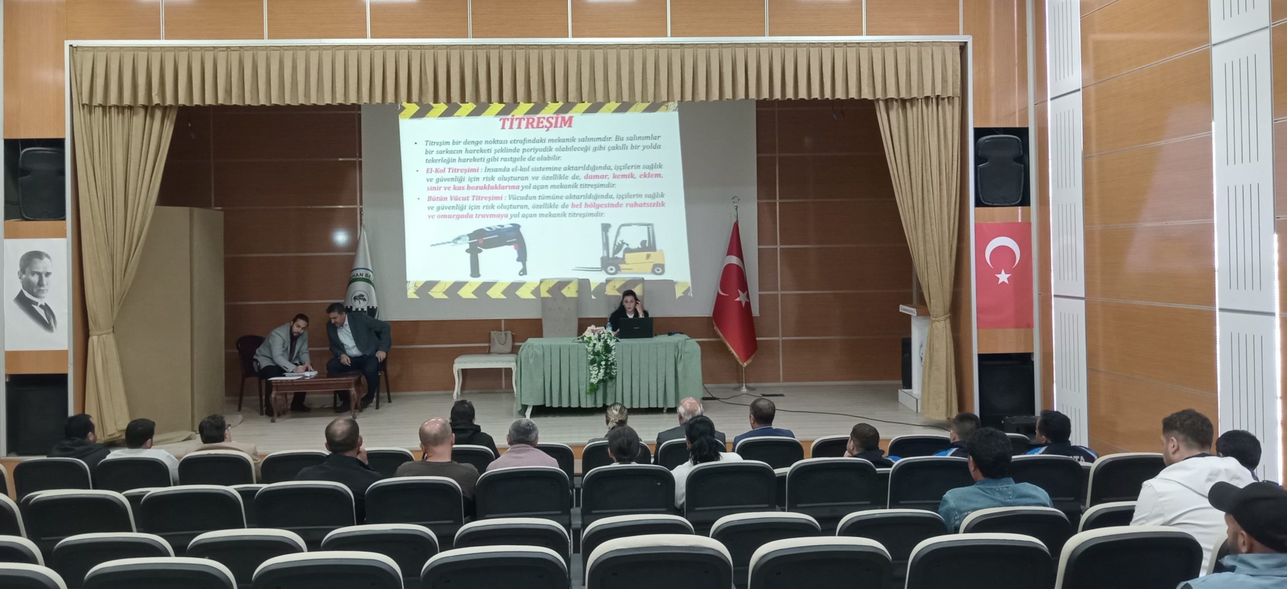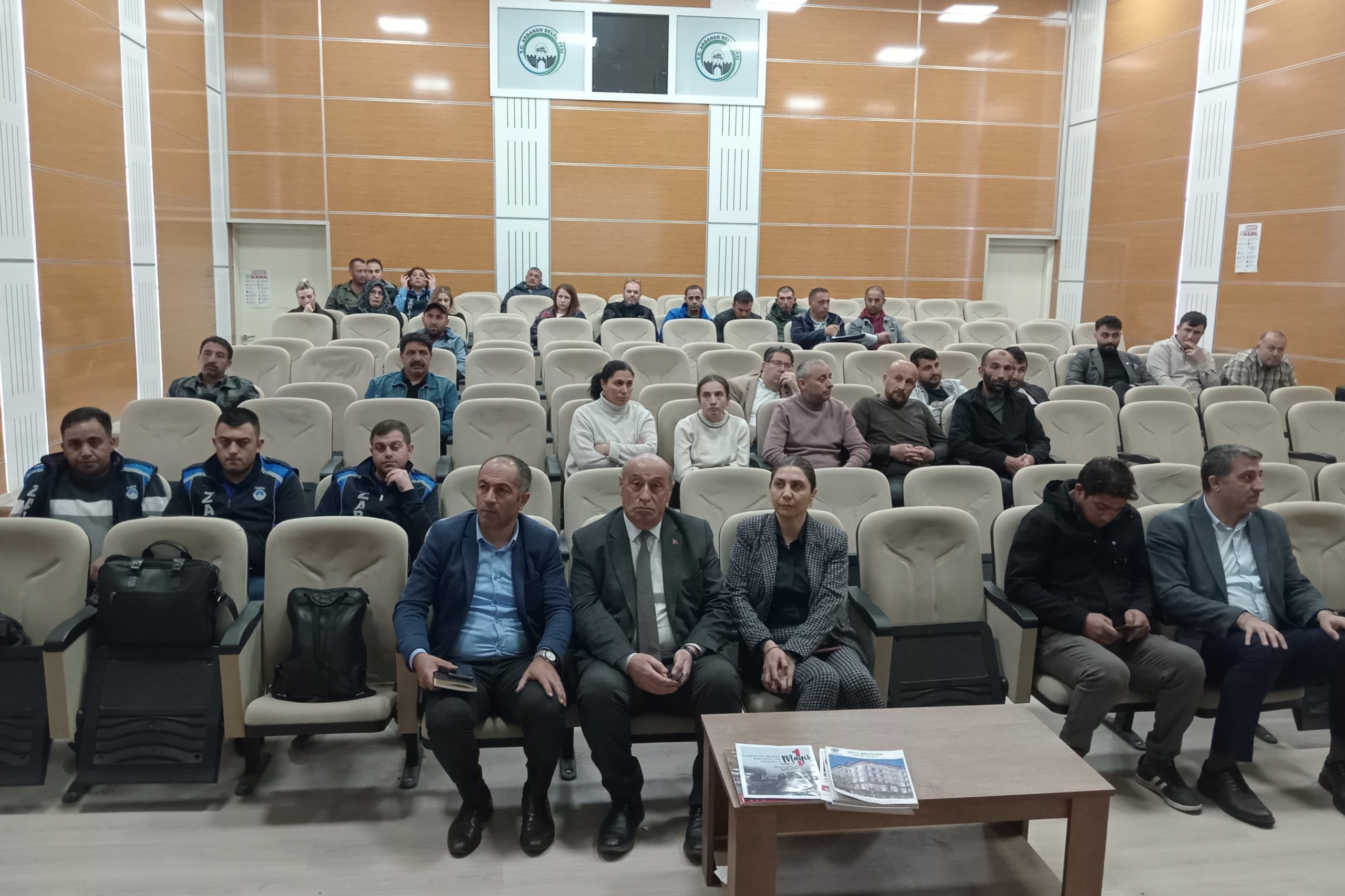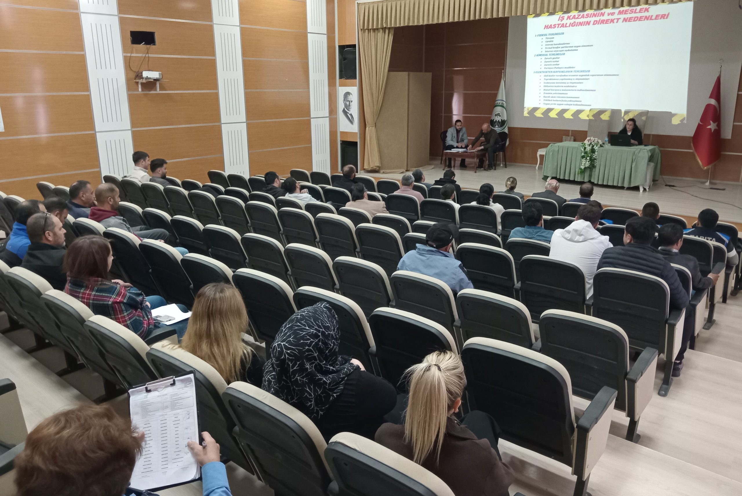 Konferans Salonu’nda yapılan ve 1 saat süren “İş Sağlığı ve Güvenliği” başlıklı eğitim toplantısına belediye birim müdürleri ile çalışanları katıldı.