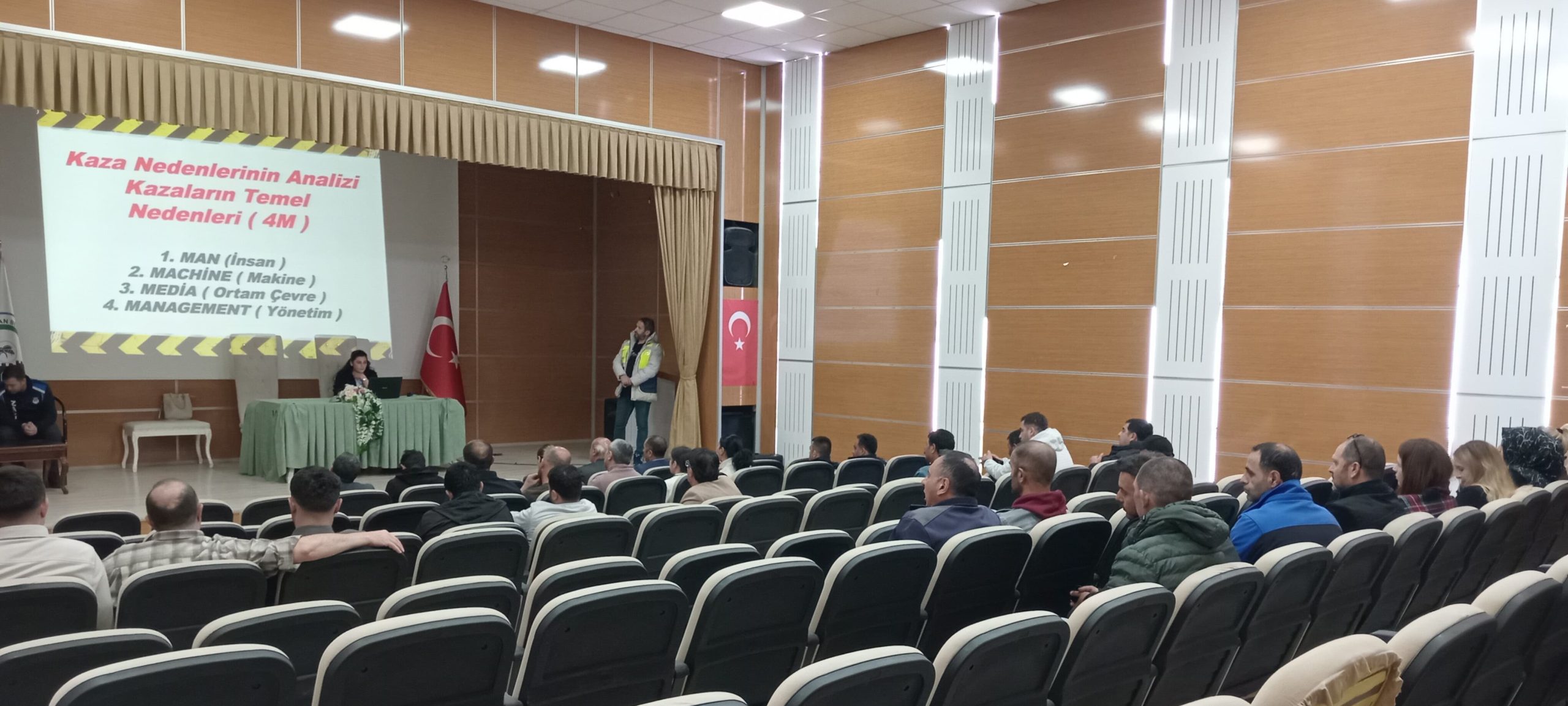 Personellerin sağlıklı ve güvenli bir çalışma ortamında bulunmalarının önemine dikkat çekmek amacıyla düzenlenen toplantıda katılımcılara; iş kazalarının meydana gelme nedenleri ile kaza risklerinin azaltılması, farkındalık düzeyinin artırılması ve olası kazaların önlenmesine yönelik alınabilecek tedbirler hakkında detaylı bilgi verildi.