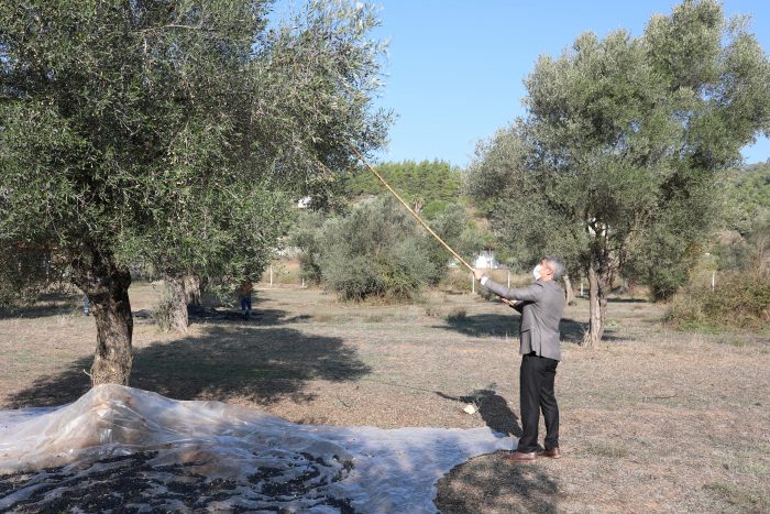 Konuşmaların ardından Belediye Başkanı Mehmet Oktay, işçilerle birlikte zeytin topladı.