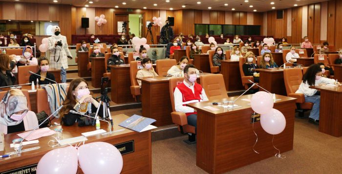 Meme Kanseri Bilinçlendirme ve Farkındalık Ayı etkinlikleri kapsamında seminerin düzenlendiği Kartal Belediye Meclisi pembe balonlar ve pembe kurdeleler ile süslenendi. Özel Kartal Kızılay Hastanesi doktorlarından Genel Cerrahi Uzmanı Prof. Dr. Alper Cihan tarafından verilen seminerde meme kanseri ile ilgili pek çok pratik bilgi katılımcılar ile paylaşıldı.