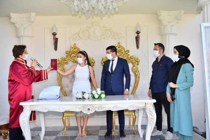 Beylikdüzü Belediyesi, koronavirüs tedbirleri kapsamında, salon nikahlarında davetlilerin sınırlı sayıda nikaha katılmasından dolayı yaşanan duruma çözüm üreterek kır nikahı uygulaması başlattı. Yakuplu Sosyal Tesisleri’nin bahçesinde, Çarşamba günleri yapılan kır nikahlarında, hayatlarının en özel anını sevdikleriyle birlikte paylaşabilmenin mutluluğunu yaşayan çiftler, uygulamadan çok memnun.
