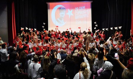 29 Ekim Cumhuriyet Bayramı’nın 99. yılı etkinlikleri Beylikdüzü’nde başladı. Hüseyin Tütüncü Gündüz Çocuk Bakımevi ve Şehit Öğretmen Şenay Aybüke Yalçın Gündüz Çocuk Bakımevi’nde eğitim gören öğrencilerin hazırladığı, Atatürk ve Cumhuriyet konulu şiir ve dans gösterileri renkli görüntülere sahne oldu. Aşık Veysel Güzel Sanatlar Lisesi Sahnesi’nde gerçekleşen etkinliğe katılan Beylikdüzü Belediye Başkanı Mehmet Murat Çalık, “Evlatlarımıza ve gençlere baktıkça memleketin geleceğinin çok daha aydınlık olacağını görüyorum.” dedi.