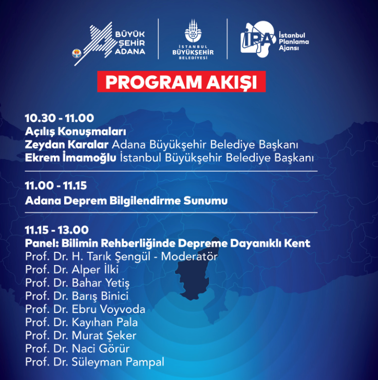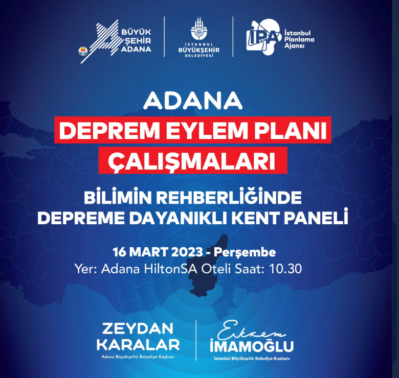 Adana Deprem Eylem Planı Çalışmaları kapsamında Bilimin Rehberliğinde Depreme Dayanıklı Kent Paneli, 16 Mart 2023 Perşembe günü, saat 10.30’da Hilton SA’da yapılacak.