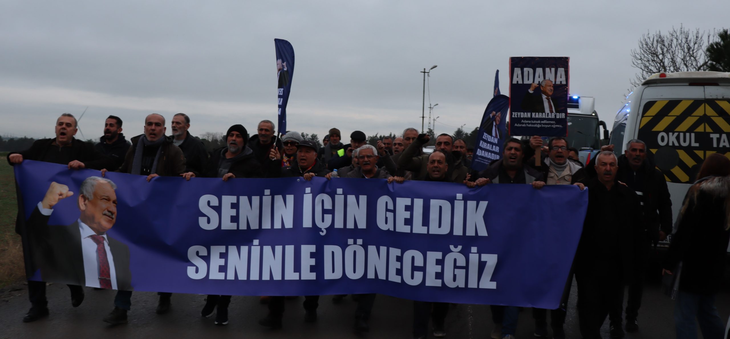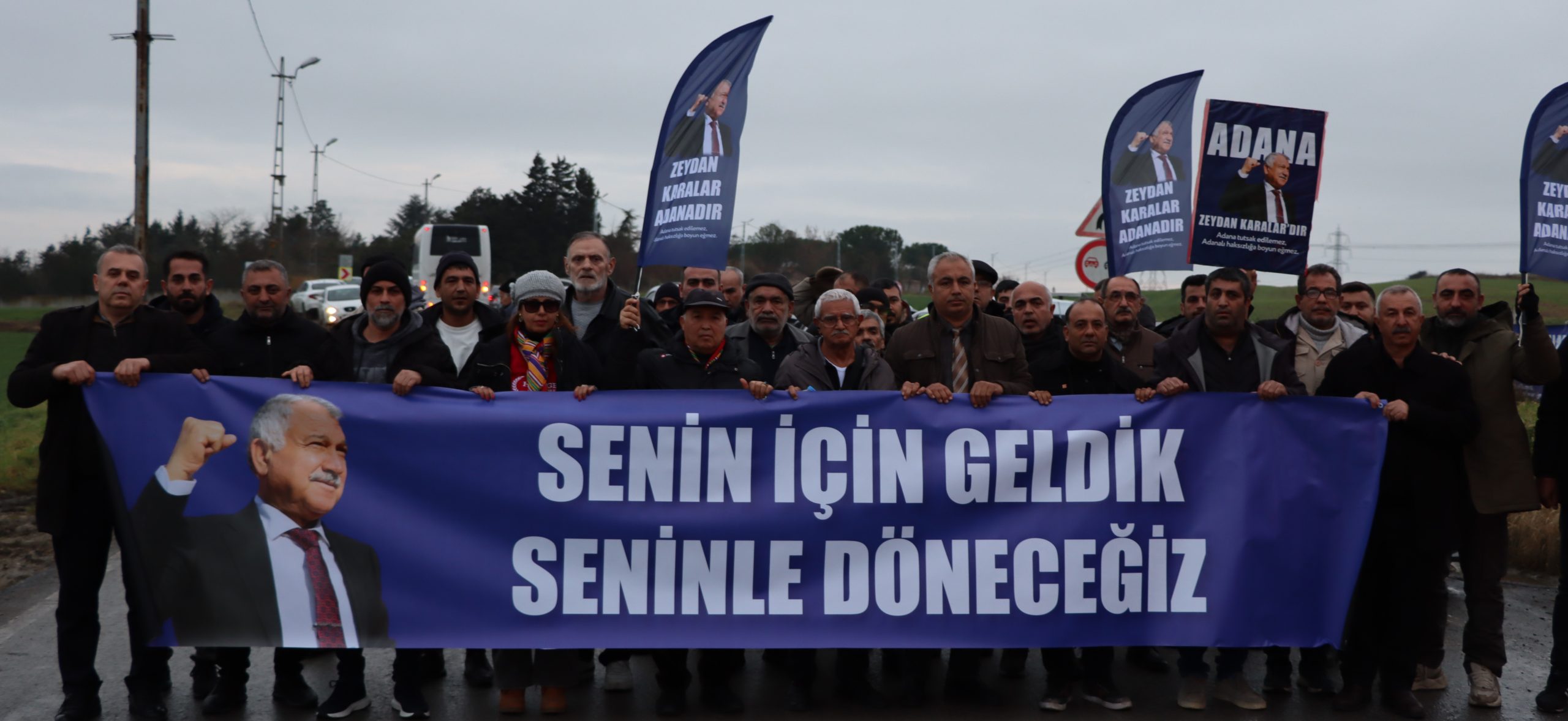 Başkan Zeydan Karalar’ın mahkemede ifade vereceği saatlerde binlerce Adanalı, Başkanlarına destek vermek amacıyla Silivri’ye ulaşıyor. Adana’dan çoğunluğu otobüslerle hareket eden Adanalılar, bugün sabah saatlerinde Silivri Askeri Lojmanları yanındaki arazide toplanarak, destek ve dayanışma için güç birliği yaptı. “Senin İçin Geldik, Seninle Döneceğiz” yazılı pankart taşıyan Adanalılar; “Hak Hukuk Adalet, Her Yer Silivri Her Yer Direniş, Adana’nın Gururu Zeydan Karalar” sloganları atarak, Zeydan Karalar’a özgürlük talebinde bulundu.