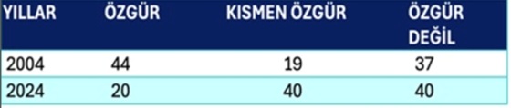 Maalesef dünya da  siyasi haklar ve sivil özgürlükler olarak , özgür ülke sayısı son 20 yılda 44 ‘ten 20’ye geriledi.