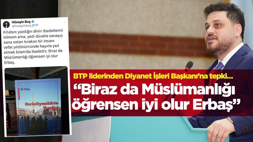 Ali Erbaş’ın Hristiyanlıkla ilgili yazdığı bir kitabının görselini paylaşan BTP lideri “Biraz da Müslümanlığı öğrensen iyi olur Erbaş” ifadelerini kullandı.