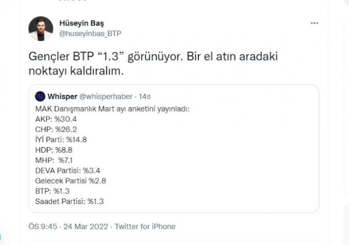‘BTP’nin oy oranı 1.3 görünüyor. Bir el atın aradaki noktayı kaldıralım.’