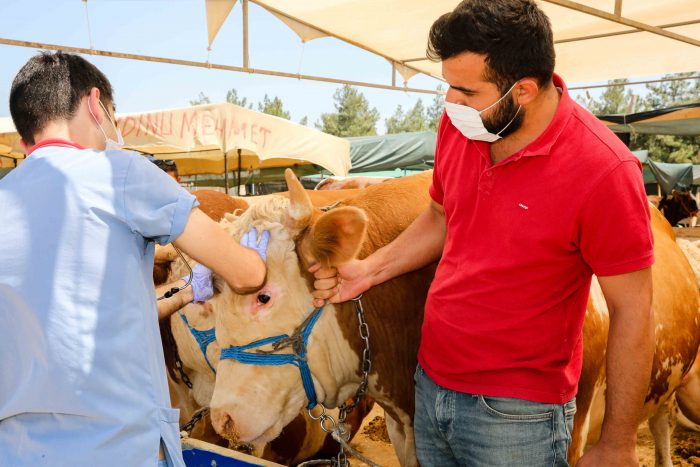 Buca Belediyesi Veteriner İşleri Müdürlüğü ekipleri, kurbanlıkların pasaport kontrollerinin yanı sıra düzenli olarak sağlık kontrollerini de gerçekleştiriyor. Çadırları tek tek dolaşarak, hayvanların küpelerini, genel sağlık durumlarını ve yaşlarını kontrol eden veterinerler, bayram süresince de denetimlerini sürdürecek. Kesimlerin yoğun olarak yapıldığı bayramın birinci ve ikinci günleri, kurban pazarlarında çalışma yapacak olan Belediye veterinerleri, kesim esnasında tespit edilen hastalıklı kurbanlıklar konusunda da vatandaşlara yardımcı olacak.