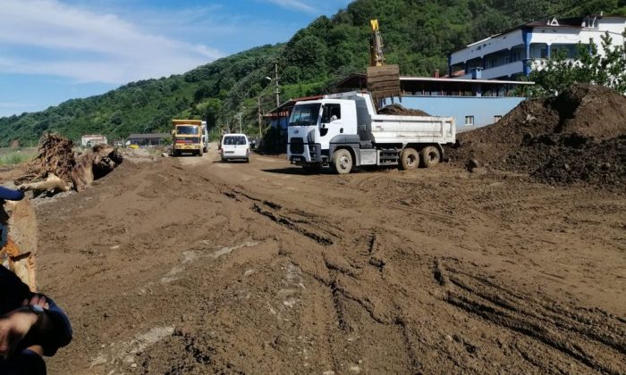 Bursa’da geçtiğimiz Cuma günü akşam saatlerinde Karacabey ilçesi genelinde etkili olan sağanak yağışlar, ilçenin kuzey kıyılarındaki sahil köylerinde adeta felakete yol açtı. Sağanak yağış sonrası dağdan sürüklenen çamur ve taşlar birçok ev ve iş yerini kullanılamaz hale getirirken, kapanan yollar ulaşıma engel oldu. Özellikle Yeniköy, Malkara ve Kurşunlu Mahallelerinde etkisi daha etkili olan yağışlar bu yerlerde yaşamı adeta felç etti. Oluşan sel felaketi sonrası mahalle aralarından akan suların şiddeti, yağmurun şiddetini kaybetmesi ile ortaya çıktı. Dağdan inen kaya, çamur ve ağaç parçaları herhangi bir can kaybına neden olmazken, çok sayıda ev ve iş yeri hasar gördü. Olayın hemen ardından ilk etapta Kurşunlu mahallesinde yoğun bir çalışma sergileyen Bursa Büyükşehir Belediyesi Ulaşım Dairesi Başkanlığı ekiplerine BUSKİ ve Karacabey Belediyesi ekipleri de destek verdi. Ekipler, özellikle çamur yığınları, kaya ve dal parçalarıyla kapanan yolları ulaşıma açtı. Büyükşehir ekipleri bunun yanında selden zarar gören ev ve işyerlerinin temizliği noktasında da vatandaşlara destek verdi. Büyükşehir ekipleri, Kurşunlu mahallesindeki çalışmaların tamamlanmasının ardından çalışmalarına yine selden büyük zarar gören Yeşildere Mahallesi’nde devam edecek. AHA.